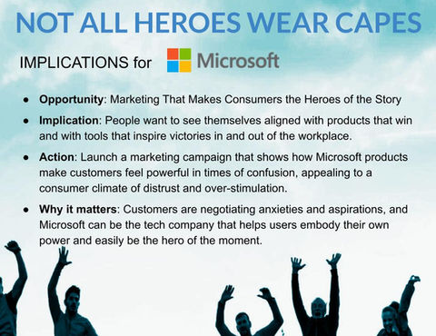 Why it matters: Customers are negotiating anxieties and aspirations, and Microsoft can be the tech company that helps users embody their own power and easily be the hero of the moment.